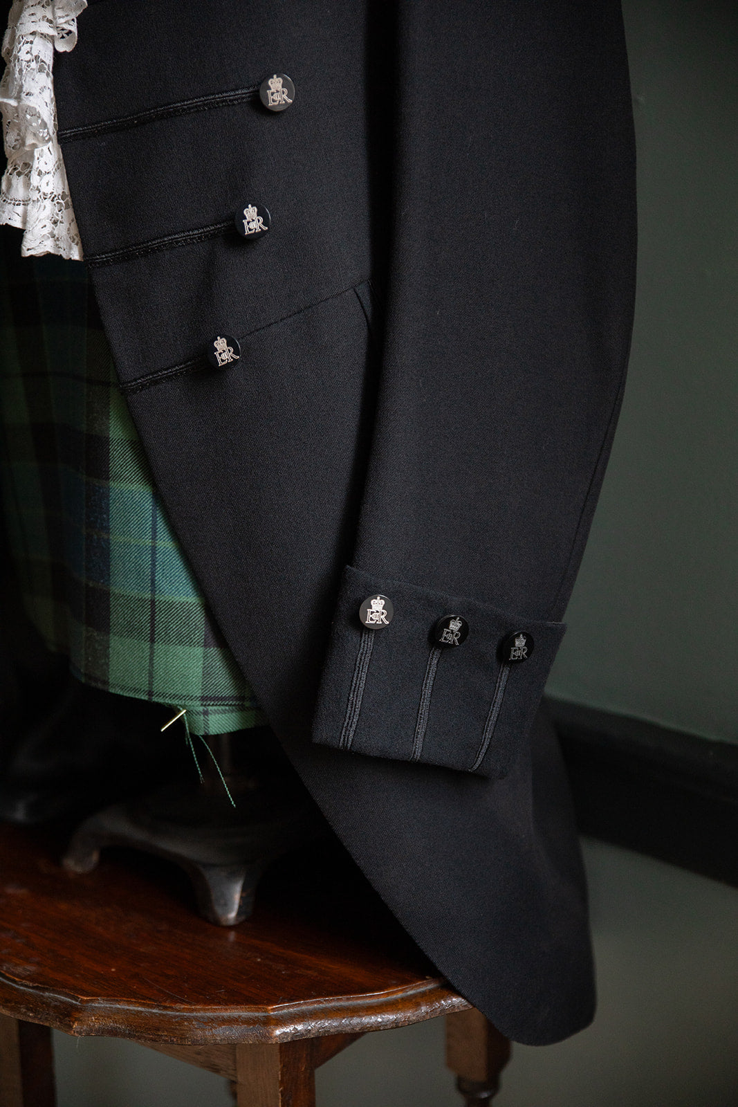 It is a well kept secret that Stewart Christie & Co. Edinburgh also are suppliers of legal and judicial garments. We hold as stock: linen falls, tunic shirts, collars and KC gowns along with off the peg options of Advocates and Sheriff's blacks. For more specialised gowns and court jackets we offer a bespoke service made to the highest standards giving longevity and formality, and a hint of unique elegance. We also cater for both male and female outfits with the opening of the new ladies department.